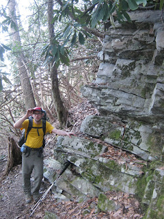 Woke up fairly early with the intention of making it to the "NOC" by noon or shortly after. Stopped for a quick snack at Rufus Morgan Shelter where we had a laugh at a past thru-hiker's misspelled rantings written on the wall and plenty of clever bible tracts. Walked the last mile to the NOC (the Nantahala Outdoor Center which is a whitewater rafting/outdoor activity hotspot). When we arrived we were surprised to find that the Wesser General Store (our resupply point) sold mostly candy, soda, beer, and flies (for fishing). We left with a small bag of junk food and a 12-pack of Yeungling lager, in cans of course, and sat by the bathrooms to repack or bags. There we witnessed a number of strange interactions between people (bikers clad in leather, yuppies, girls wearing only bikini tops who shouldn't, young men without shirts carrying kayaks and rafts) and because we saw other people drinking beer openly in public, we did too. One beer and twenty strange minutes later we were crossing the Nantahala River on a foot bridge, walking through a parking lot, across train tracks, and once again up into the mountains. We found a small bridge over a dried up spring about half a mile up the trail, and since we didn't spend nearly as much time at the NOC as we had planned, we sat and killed some time (and that 12-pack). We left in search of water a couple of hours later, still wanting to put a dent in the 8 mile climb out of the Nantahala River Gorge. We eventually came upon a spring and decided to take a break and fill up. While there, a young kid from Florida who looked like the 4th Jonas brother ('Baywatch') and two early 20-something's from CT (Laurel & ???) stopped to do the same. We talked, they left, and we headed up Swim Bald to a campsite just off the trail in a Rhodedendron thicket. Set up camp as it was getting dark after hiking with headlamps. Another hot sunny day and clear star filled night.